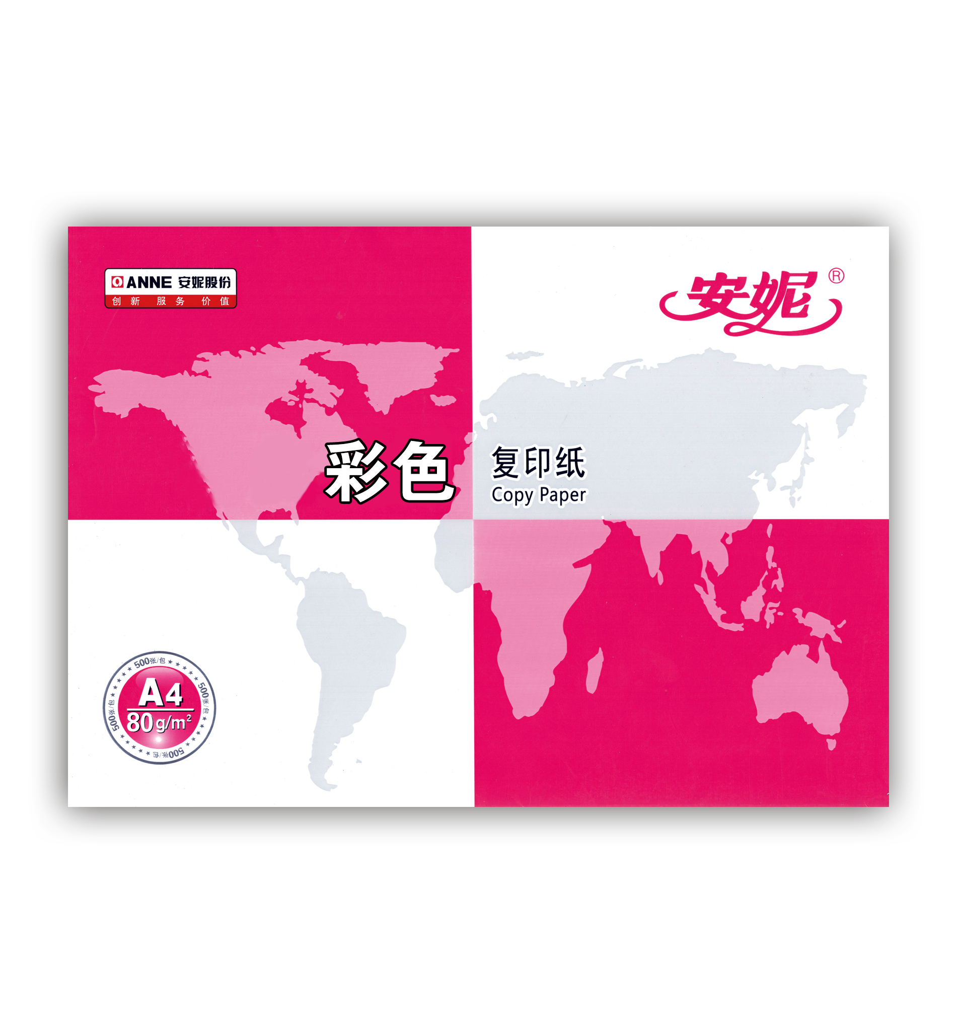 安妮/ANNE A4 80g 粉红 粉红色/10包/复印纸